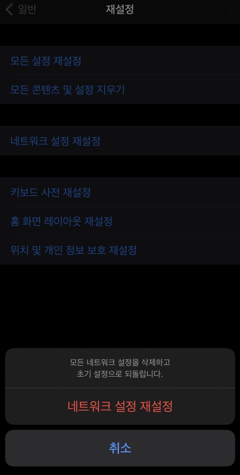 6. ‘네트워크 설정 재설정’ 누릅니다.